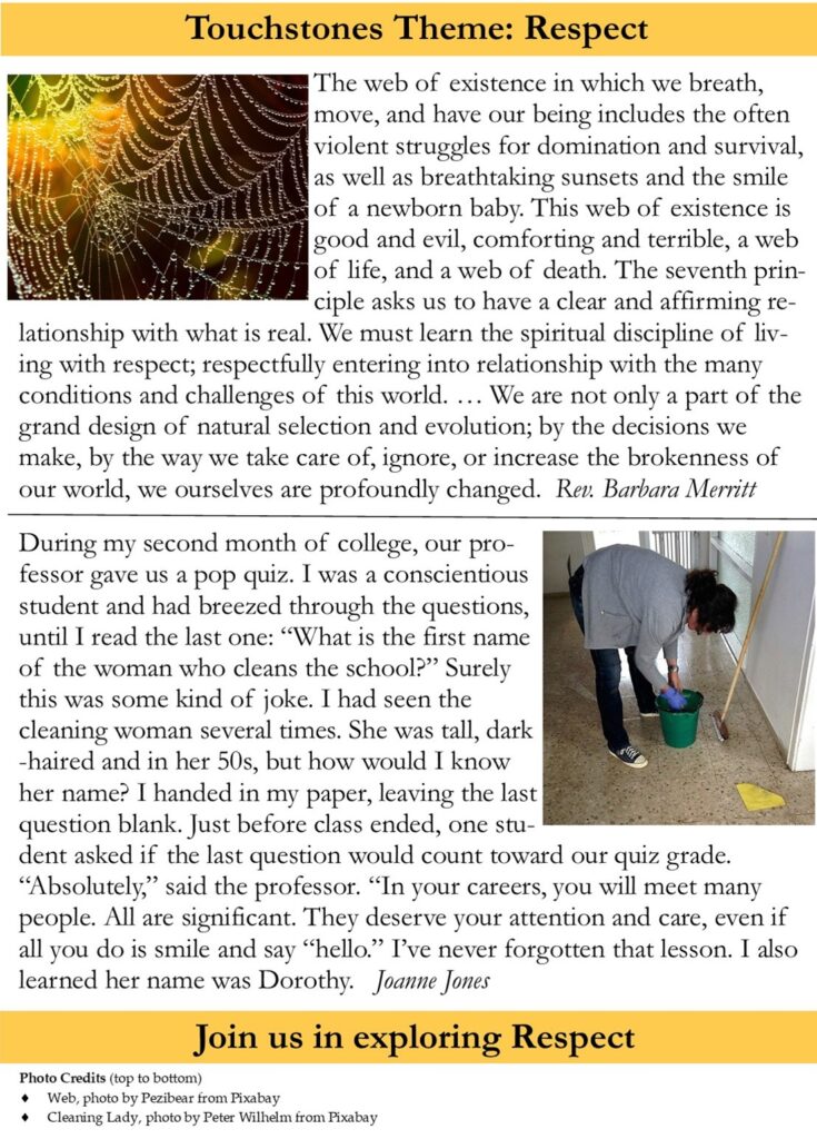 Our Touchstones Theme for April Is “Respect”